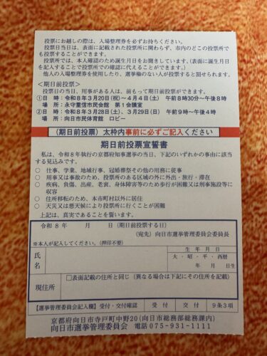 京都府知事選挙投票行って来ました。